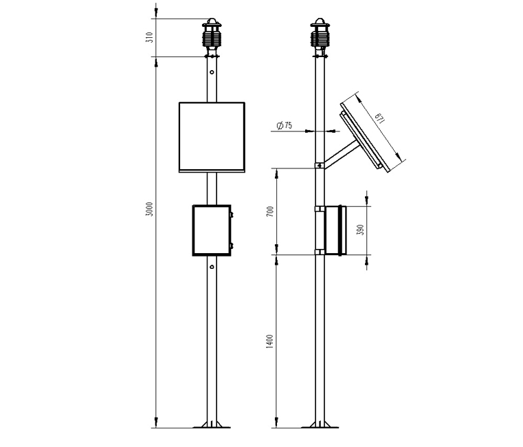 5、兩米碳鋼支架,頂部無(wú)需法蘭盤(pán)可直接套接傳感器